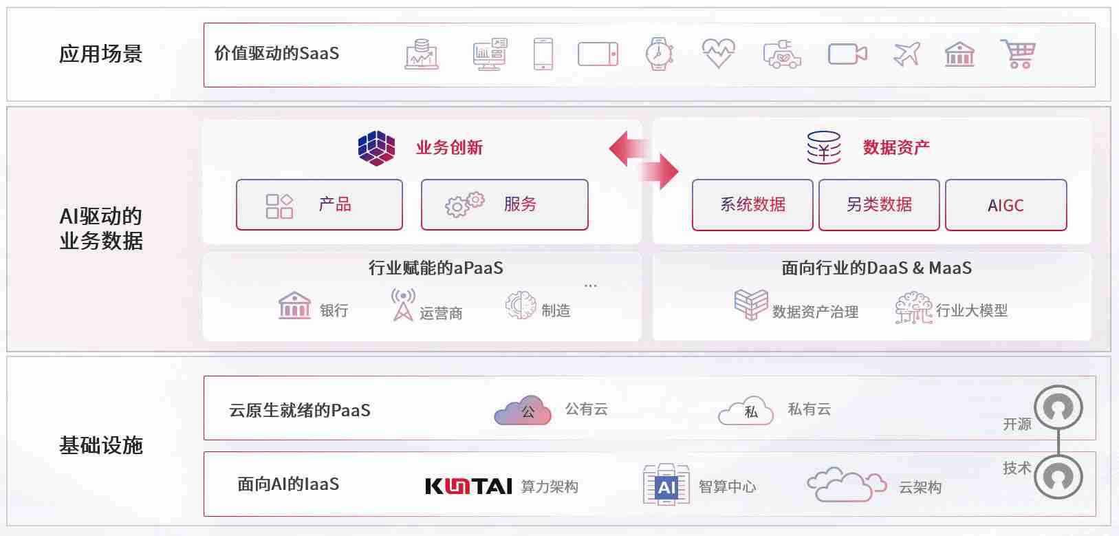 数字时代,,,,围绕企业数字化转型的关键要素,,,,恒行6数码开创性的提出数云融合战略和技术体系框架,,,,着力在云原生、、、、数字原生、、AI原生和信创产业上架构产品和服务能力,,为处在不同数字化转型阶段的快消零售、、汽车、、、、金融、、医疗、、政企、、、、教育、、、、运营商等行业客户提供泛在的敏捷IT能力和融合的数据驱动能力,,,,构建跨界融合创新的数字业务场景和新业务模式,,助力企业级客户建立面向未来的核心能力和竞争优势,,全面推动社会的数字化、、、、智能化转型升级。。。。